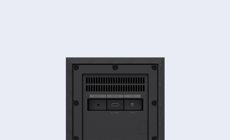 با یک کابل HDMI (ARC) یا کابل نوری، بهسادگی ساندبار را به تلویزیون متصل کنید. همچنین امکان پخش موسیقی از USB و AUX نیز وجود دارد.